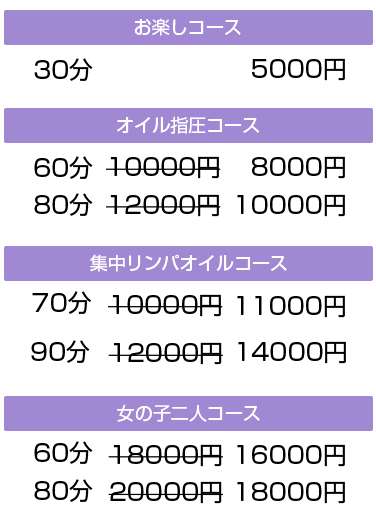 当店では、アロマオイルの効能と当店自慢のセラピストによるリンパマッサージの相乗効果による、癒しのひとときをお客様お一人お一人にお届けしております、自然で心やすらぐ優美な香りを、施術中はもちろんご帰宅お休みになってから翌日朝目覚めでまで楽しんで頂けます、どうぞゆっくりご堪能ください。